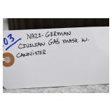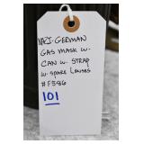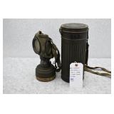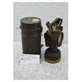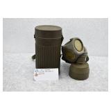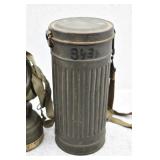 651. WWII Nazi Gas Mask Rubber Facemask w/“FE41” Canister – w/Military Carrying Case and Web Straps