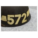 637. Post WWII German Fireman’s Helmet w/Neck Flap – “Glow in the Dark”