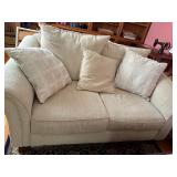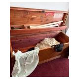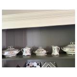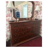 FURNITURE: 8 Pc. dining room w/ china cabinet & hutch, Gorgeous mahogany dresser w/ mirror, Bedroom dressers, Living room set, Sofa couch, Armoire, Recliner, End tables, White bedroom set, Rocker, Beds, Room divider screen, Bookshelves, Lane cedar chest, Painted white bench, Antique high chair, Pantry cupboards & shelves, Day bed, More!