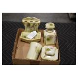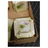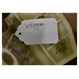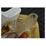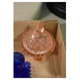Antique Glassware: Uranium Glass, Chicken on the Nests, Rabbit on the Nest, Pink Depression, Art Glass Vases, Vaseline Glass, Blue and White Glass, Milk Bottles, Old Bottles, Glass Mixing Bowl Sets, Waterford Redskins Football, R.S. Red Star Tea Set, Kobalt Blue Glass, Hobnail Glass, Nippon Glass, Glass Shoes, Cream of Wheat Cookie Jar, Lenox Chipmunk, and Other