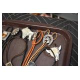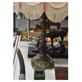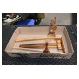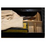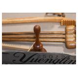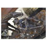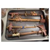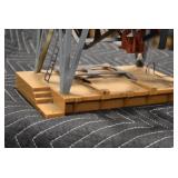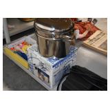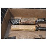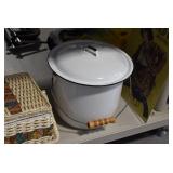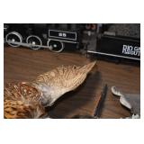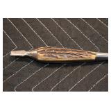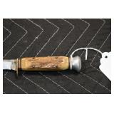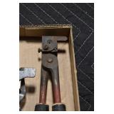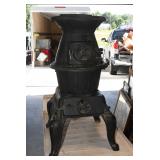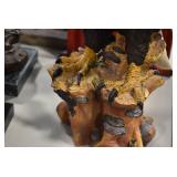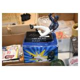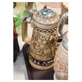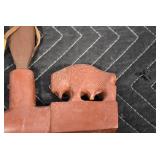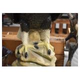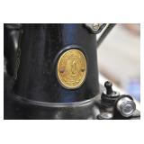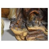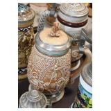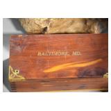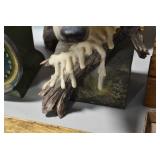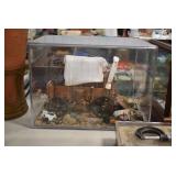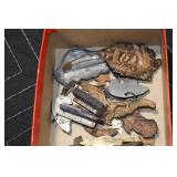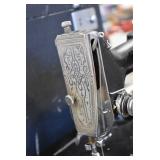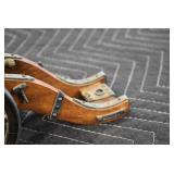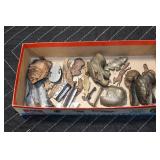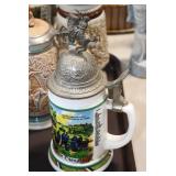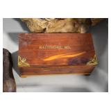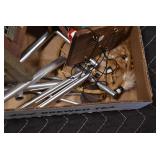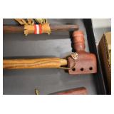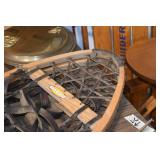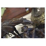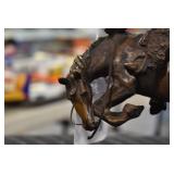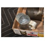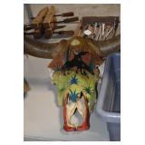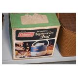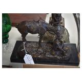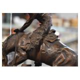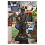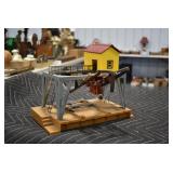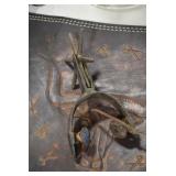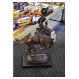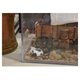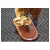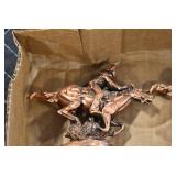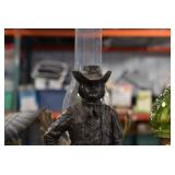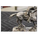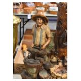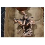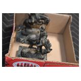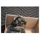 Antiques and Collectibles: 35 Longaberger Baskets of Various Sizes and Styles, Large Amount of Vintage Cameras and Camera Accessories, Pottery Crocks and Jugs, Cast Kettle, Wapak No. 8 Cast Iron Fry Pan w/Indian Head, Griswold, Wagner, and Other Cast Fry Pans, Griswold Butter Mold, Cast Sad Irons, Cast Door Stops, Brown Stove Works Inc. Cast Iron Stove, Cast Hanging Bell w/Deer On Top, Cast Trinkets, Railroad and Other Lanterns, Oil Lamps, Ornate Table Lamps, Thorens Music Box, Rooster Weather Vane Top, Copper and Brass Items, Tinware, Confederate Money, Large Amount of Vintage/Collectible Tools, Buttons, German Steins, Bolo Ties, Snow Shoes, Vintage Clocks and Thermometers, Eagle Statues, “Rodeo Cowboy” By Carl Kauba Statue, “Rattlesnake” By Frederick Remington Statue, “At Rest” By James Earl Frazer Statue, Western and Indian Statues, Miniature Cannons, Wooden Duck Decoys, Carved Wooden Figures, Decorated Butter Churn, Singer No. 221-1 Portable Sewing Machine, Vintage Scales, Breyer Animal Figures, 1800’s Vintage Coal Miners Canteen, Wells Fargo Overland Stage Coach in Display Case, Butcher Knives, Hatchets, Large Amount of Stamps and Stamp Albums, Belts and Belt Buckles, Framed Prints and Pictures, and Other