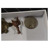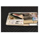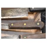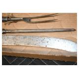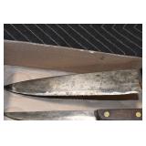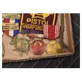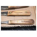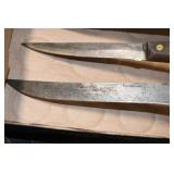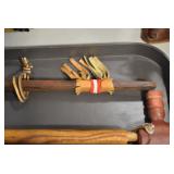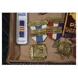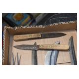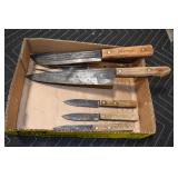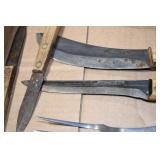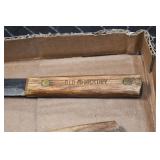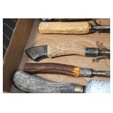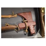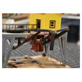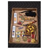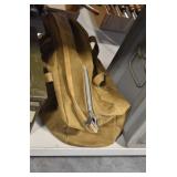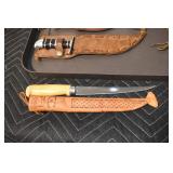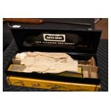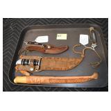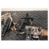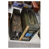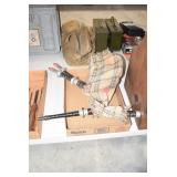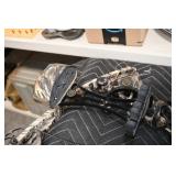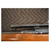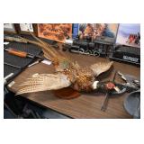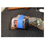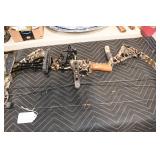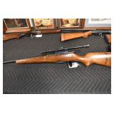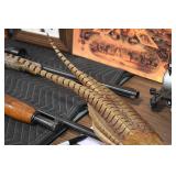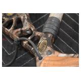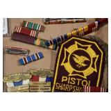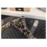 Military and Sporting Related: Springfield-Stevens Model 5100 20ga. Double Barrel Shotgun, Savage Model 340-C 222 Rem. Cal. Bolt Action Rifle w/Weaver Scope, Mossberg Model 500-C 20ga. Pump Action Shotgun, Remington Model 510 22 Cal. Bolt Action Rifle, Knight Model Disc Rifle 50 Cal. Inline Muzzleloader w/Bushnell Scope, Cabelas Model Hawkin Rifle 50 Cal. Percussion Muzzleloader, Matthews Solo Cam Compound Bow, Military Patches and Badges, Pheasant Mount, Victor Animal Trap Tie Clip, Mill Rin Brite-Bore Gun Cleaning Kit, Magazines and Clips, Leupold Rifle Bore Sighter, Various Ammunition, Ammunition Cans, Bullet Molds, Large Amount of Folding, Pen, and Sheath Knives, and Other