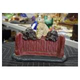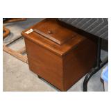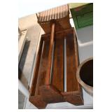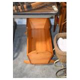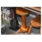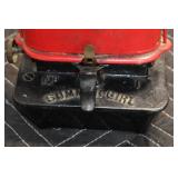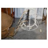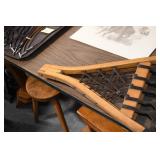 Furniture: Vintage Wooden Bench, Drop Leaf Table w/6 Chairs, Dining Room Table w/6 Chairs, Cedar Chest, Wooden TV Stand, Vintage Refrigerator/Stove Toy, Wooden Side Table, Porcelain Top Table, Vintage Chest of Drawers, Sentry Home Office Safe, Sewing Machine Stand, Wooden Porch Swing, Wooden Bear Bench, Planters, Various Wooden Chairs, End Stands, and Other