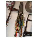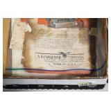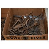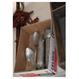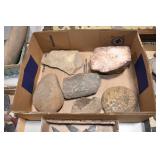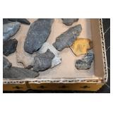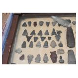 Antiques and Collectibles: (30) Longaberger Baskets of Various Sizes and Styles, Large Amount of Indian Arrowheads, Large Amount of Cigar and Cigarette Advertising, Lighted Zippo Table Top Display Case, Figures, State Forest Boundary Signs, Pottery Crocks and Jugs, Cast Fry Pans, Vintage Plastic Animals, Advertising Items, Oil Lamps, Lanterns, Political Bronze Advertising Tokens, Fire Department Ribbons, Jim Shore Nativity Scene, Jim Shore Santa Figures, Jim Shore Angel, Dragnet Official Target, Porcelain Face Dolls, Military Soldiers, Vintage Railroad Photographs, Large Amount of Vintage/Collectible Tools, Framed Prints and Pictures, and Other