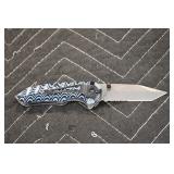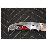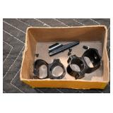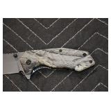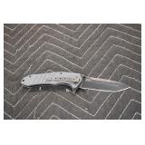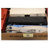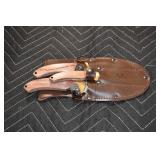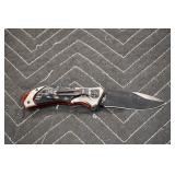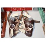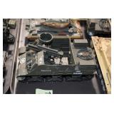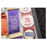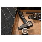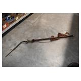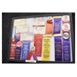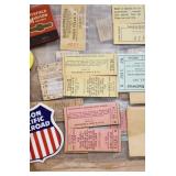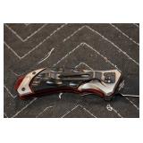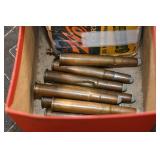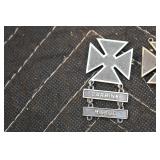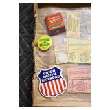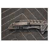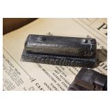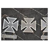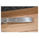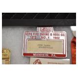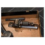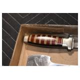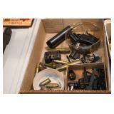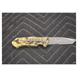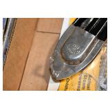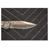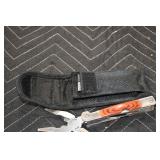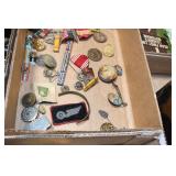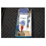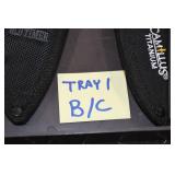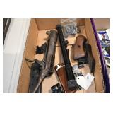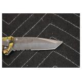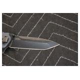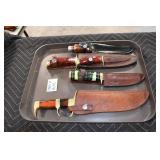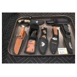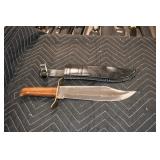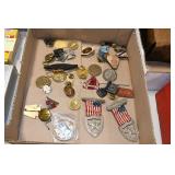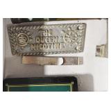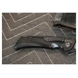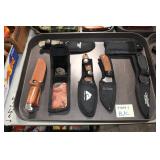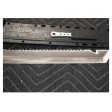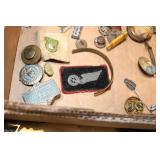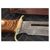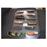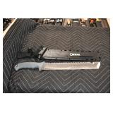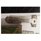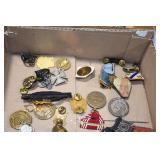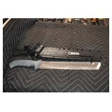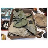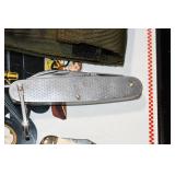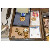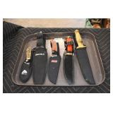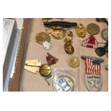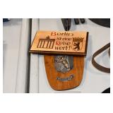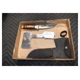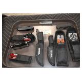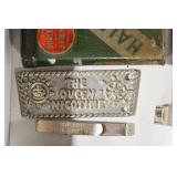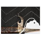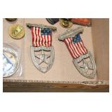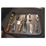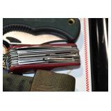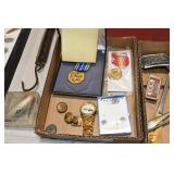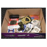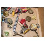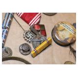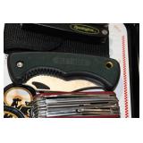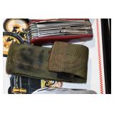 Military and Sporting Related: Large Amount of Swords, Bayonets, and Daggers, Military Patches, Badges, and Pins, Military Helmets, Military Canteens, Military Pillowcases, Military Photographs, Military Shelf Cabinet, Company G 16th Regiment 2nd Brigade Original Wood Check w/Blue Paint, Ammunition, Sights, BB Guns, Large Amount of Folding, Pen, and Sheath Knives, Knife Sets, Multi-Tools, and Other