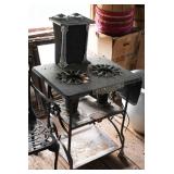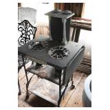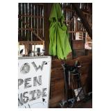 Outdoor and Indoor Furniture: Several Iron Patio Sets, Wooden Deacons Bench, Propane Stove w/Backsplash, Wicker Chairs, Various Industrial Stands, Walnut Slant Front Bookcase Secretary, Various Chairs, and Other Auctioneers Note: Dan Keys was a well-known collector of rare and unusual items including: bronzes, African and Asian art, Wallace Nutting prints, marble figurines, signed documents, and more. This is a very unique opportunity to purchase some very rare collectibles.