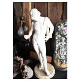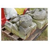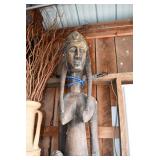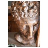 Statues and Carvings: Large Amount of Concrete Lawn Statues, Pillars, and Planters, Concrete Bust Buddha Figures, Carved Wooden 17” Bust of Goethe, Carved Jadeite Dimensional Orb, Zulu and Other African Carved Figures, Carved Religious Figurines, and Other