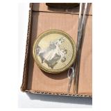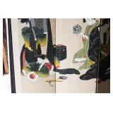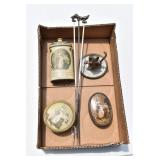 Antiques and Collectibles: Brass Furnari, Carved Wooded Figures, Pot Metal Figurative Lamps, Hammered Bronze Tray, 11’x25½” Bronze Plaque of Sara Redwood Lee at Age 16, 14½”x24” Bronze Plaque of 2 Young Girls Sara Redwood Lee and Helen Lee, Cast Pedestal w/Horse and Rider, Wooden Advertising Boxes, Large Amount of Pottery Planters, Peach Baskets, Chicken Crates, Large Iron “R”, Bone Handled Kitchenware, Exceptional Set of Dazey No. 40 Churn Jars in Wooden Carrier Box, Oriental Table Lamps, 1992 Carved Pair of Common Eider’s, Decorated Oil Lamps, West German Steins, Wooden Zulu Head/Neck Rest, Candle Molds, Decorated Oriental Room Dividers, Large Carved Dimensional Bear Hunting Scene, Navajo Woven Baskets, Railroad Paraphernalia, Bronze Quail and Goose Spickets, Cast Lion Doorstop, Carved Soapstone Items, Oriental Clothing, P. Roche By Castano Limited Edition Bronze, Hammered Tin Round Lunch Pale, Norman Clark Farm Equipment Thermometer, Skookum and Other Indian Dolls, Pottery Vases, Watch Fobs, Brass Urn, Large Hammered Brass Candle Holders, Mantle and Other Clocks, Vintage Paper Mache Pumpkins, Stamp Albums, Early Folk Art Books, Vintage Scales, Unusual Mohair Bear, Paper Ephemera, Vintage Compass, Collector Spoons, Roseville Handled Vase w/Lid, Tobacco Advertising, Riding Crop, Cigarette Dispenser, Beaded Sashes and Ladies Purses, Vanity Sets, Vintage Decoys, Inkwell, Tin Stencils, Oriental and Other Rugs, Vintage Bicycles, and Other