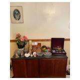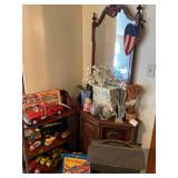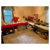Vintage Nine Drawer Oak Card Catalog, Knotty Pine Corner Cupboard, Mid Century Credenza, Sofa w/Matching Chair & Ottoman, Burgundy Recliner, Mahogany Dining Room Table w/(2) Leaves, Chairs, & China Closet, Sofa Table, Wood Console w/Matching Mirror, Platform Rocking Chair, Newer Barrister Bookcase, Wood Chest, Twin Bed, Gossip Bench, Roll Top Desk, Vintage Wood Toy Chest, Pedestal Lamp Table w/Round Glass Top, Coffee, End & Accent Tables, Vintage Wood Youth Chair, Small Wood Chest w/Hinged Lid, (4) Upholstered Wood Arm Chairs, (3) Drawer Metal File Cabinet w/Key, Large Assortment Of Table Lamps, (2) Cuckoo Clocks, Large Area Rug, Very Large Studio Pottery Collection (Vases, Plates, Bowls, etc.), Framed Artwork Including Prints & Newer Oils, Huge Lenox Collection Including Tons Of Christmas Theme, Trinket Boxes, Candle Holders, Cookie Jar, Numerous Small Vases, Figurines, etc., Collection Of Marble & Alabaster Animal Figurines, Large Paperweight & Glass Figurine Collection, Pair Porcelain Oriental Jardinières On Tall Wood Stands, Italian & Venetian Art Glass Vases, Glasses & Bowls, Tons Knick Knacks & Figurines, Frog Collection Including Outdoor Planters, Figurines, Miniatures Stuffed Animals, etc., Many Miniatures & Wood Wall Shelves, Stemware – Some Vintage, Mikasa “Merrick” Dinnerware Set, Corning, Barware Including (2) Cobalt Blue Decanters, McDonalds Peanuts & Snoopy Glasses, Stainless Flatware, Small Appliances, Pots & Pans, Bakeware, Ladies Clothing, Purses & Shoes Including NIB White Reebok Classic Sneakers (7.5), Linens New & Old, Brother Portable Sewing Machine, Skeins Of Yarn, Pittsburgh Sports Memorabilia, Many Board Games – Some Vintage, Tons Stuffed Animals, Beanie Babies Collection w/Wagon, (3) Cabbage Patch Dolls, Radio Flyer Town & Country Wagon, Pair Easter Bunny Blow Molds, Tons Of Christmas – Some Vintage Including Ornaments, Figurines, Wreaths, Candles, Cookie Jars (NIB), Ceramic Houses In Boxes, Lladro Bells, etc., Electronics Including Flat Screen TV, VHS & DVD Player Combo, MCM Telefunken Console Hi-Fi Stereo, Crosley Stereo, Army Helmet (No Liner), Vintage Military First Aid Kit, Vintage Child’s Tricycle, Folding Shopping Cart w/Wheels, Bissell Vacuums, Aluminum & Wood Step Ladders, Leaf Blowers, Compressor, Many Wind Chimes, Adirondak Chairs, Wrought Iron Love Seat & Table, Pots & Planters, Large Assortment Of Plant Stands, Log Holder, Fireplace Tools, Rubbermaid Style Triple Cabinet, Stainless & Metal Shelving Units, GE Gas Dryer |