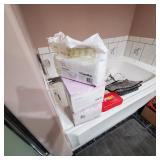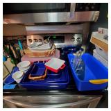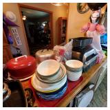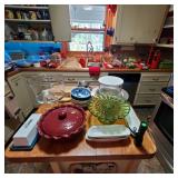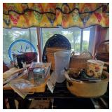 HOUSEWARES: NINJA FOODI, TUPPERWARE, PYREX, CROCKPOT, TOASTERS, INSTA POT, KITCHENAID, STOCK POTS, CANNING, RACHEL RAY, TOWELS, COPPER CHEF, OCCASIONS, KRUPS, CUISINART, KITCHEN CART, COOKBOOKS, CLEANING SUPPLIES, LINENS, TOWELS. LAUNDRY