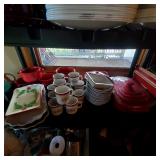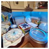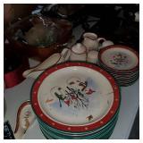 HOLIDAY ENTERTAINMENT: DISHES, SERVE SETS, CERAMIC CASSEROLES, PLATES, NAPKINS, TWINKLE LIGHTS, TRAYS, TABLE SCAPES, JOHNSON BROS CHINA SET, CANDLES, COOKBOOKS
