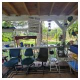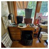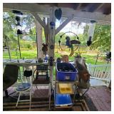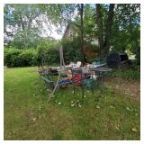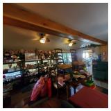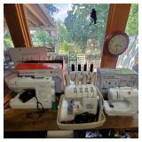 ENAMELWARE, CAST IRON YARD ART, BLOW MOLDS, CLOTHING, BEDDING, TVs, BOSE, VIKING & WHITE SEWING MACHINES, MASSAGE CHAIR, LIFT CHAIR, TABLE W. 10 CHAIRS