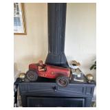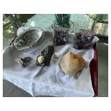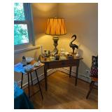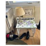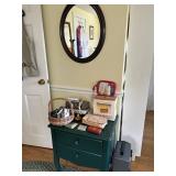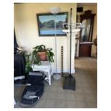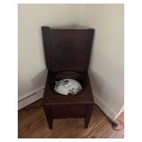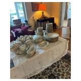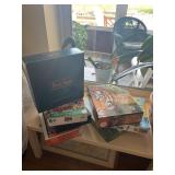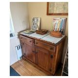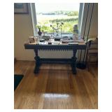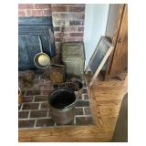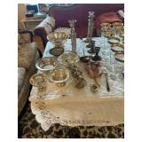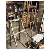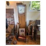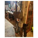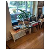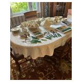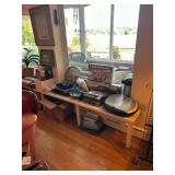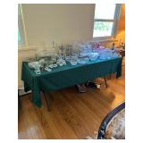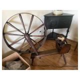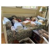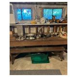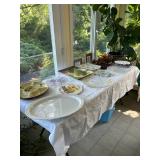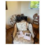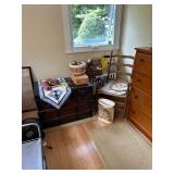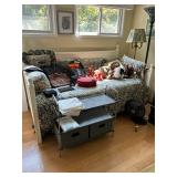Sterling, Ansonia black mantel clock, prints & oils, Christmas, Kollmorgen Spyglass, Royal Doulton "Old Leeds", Castleton "Dolly Madison" & Epiag china sets, green bakelite flatware, Christmas, fireplace tools, screen, nesting tables, Hoosier cabinet, leaded curios, icebox, hall tree, library table, wash basin, hutches, chaise, banded pedestal table, settee, couches, side chairs, brass music stand, spinning wheel, white wicker patio furniture, planters, lamps, tables, trunks, dressers, doctor's scale, bed linens, books, kitware, puzzles & games, baskets, golf clubs, hand tools, ladders & much more! |