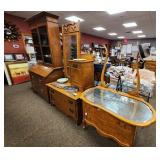 At 1012 S. Gilbert Ct (corner of Kirkwood Ave and Gilbert Ct.) Sat. Nov. 1, 2025 9:00 AM - 5:00 PM Sun. Nov. 2, 2025 10:00 AM - 4:00 PM Sat. Nov. 15, 2025 9:00 AM - 5:00 PM Sun. Nov. 16, 2025 10:00 AM - 4:00 PM We deliver locally (limited items at this time) as well as hold items until you are ready for them! Our variety spans antique, mid century, vintage and newer! Like vintage furniture? We have many MCM pieces like a wood and mirror shadow box frame. Lane Cedar Chest, 4 vintage folding chairs. We have several different red wing crocks, and an upholstered side chair. All this plus a beautiful Over stuffed leather chair and Ethan Allen comfortable chair. We have a wide variety of styles in dressers right now. From a few beautiful midcentury blonde dresser, antique walnut dressers and a tall, mirrored oak dresser with hat box. If you love old stately furniture… we have a beautiful antique tiger oak dining server with mirror, a 5 ft. 3 in x 7 ft 9 in oriental style rug with a matching 2 x 3 rug. Beautiful bookcases in that can be combined with other pieces to customize your room or make your own library. We have desks to get you organized. A small Formica desk, a modern ebony tone and glass desk …. if you want a desk but don’t want to see clutter, we have several secretaries right now… small ones that work for inside the door to catch things. To a larger antique one that would keep you organized. Roll top desks and a writing desk. Several Dining room tables wood types, a wide variety of coffee tables and end tables. Beautiful wood shelving units, table and floor lamps including 2 Stiffel lamps, a piano stool, and quilt racks. We have several beautiful vintage and antique carved clocks that are just gorgeous. A glass and metal standing desk!