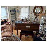 If you have been waiting for a fantastic sale with investment quality antiques, this is the sale for you. Being offered is the estate of a well-known and respected antiques dealer in Lorretto, VA. Most of these items have been tucked away for decades and are now being offered for sale. Items being offered span from the 16th century to the present day. There are a number of high quality regional Virginia items, including an early 18th century map of Virginia, two late 18th century Mark Catesby VA bird prints, several pieces of period furniture, an early and large convex eagle miror, and a large selection of decorated gray stoneware. Other particular items of note include a 16th century painting of Petrarch, an early 19th century Scottish case clock by John Dickman with beautiful double conch shell inlay, an early Seth Thomas wooden-works clock with paw feet in working condition, a mid 19th century large wooden eagle with original gesso paint, an early 20th century Native American weather vane, and a beautifully restored baby grand piano by Lindeman and Sons. Also included are several original pieces of art including a large paper mache frog by Sergio Bustamante (complete with certificate of authenticity) and paintings by Elliott Thompson (who is represented in the Smithsonian), Gregory Hull, and many others. Also represented is a selection of early ceramics, including a large late 18th century transferware platter by William and John Turner, early Chinese porcelain, and a variety of faience. There is a large selection of collector books (some rare) and regional VA books. There is beautiful early 19th wrought iron French chandelier. Most items come complete with provenance as documented by the owner. You will want to attend to see all of the great items. Above is just a partial list. There will also be sterling silver (including two mint julep cups), gold and costume jewelry, Hummel figurines, a large collection of Henn pottery, a Curtis Jere geese wall plaque, a large Steuben vase, early hand-woven rugs, a set of Lenox china, a signed Stickley secretary, a Troy Built Generator, a Thule roof-mount luggage carrier, and numerous tools and household items. Address will be released the day prior to the sale. We will include signs to direct you once you turn off the main road as the property is down a long drive-way. It is a beautiful setting, right on the Rappahannock River. |