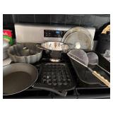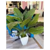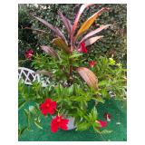 Yard decor including plants, pots, decorative pics, shepherd's hooks, bench.....more
