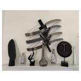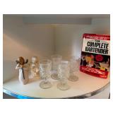 FULL kitchen including fabulous custom made lucite table with glass top and four chairs on wheels, custom made lucite swivel bar stools, lucite tray table, corner cabinet with four shelves & storage, dishes, glasses, flatware.....more