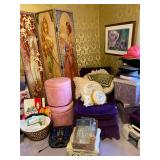 Vibrant Purple Velvet Chaise, Sofas, Vintage Crushed Velvet Love Seat, Cream Colored Upholstered Chairs, Dining Room Table w/Leaves, Chairs, China Closet & Server, Curio Cabinets, Numerous Jewelry Armoires, Large Round Violet Colored Ottoman, Very Unique (4) Panel Dressing Room/Divider Screen w/Victorian Lady Theme, Storage Trunk, Mackenzie-Childs Style Floral Print Ottoman, Table & Floor Lamps Including Tiffany Style – Some w/Jewels, Brass Music Stand, Many Wood Wall Hanging Curios, Medicine & Storage Cabinets, Gone w/The Wind Figurines w/COA, Goebel Figurines, Large Harmony Kingdom Box Collection (Many Are Harmony Garden Florals), Oriental Jade Floral Sculptures – 1 Very Large, Framed Art Work (Some Vintage) Signed Prints & Oils, (2) Stained Glass Wall Hangings, Large Blue & White Hot Air Balloon w/Basket Swag Lamp, Longaberger Baskets & Tissue Holder, Waterford Hurricane Light w/Marble Base, (2) Limited Edition Barnicott Downtown Pittsburgh & Kaufmann’s Themed Figurines – (1) Hand Signed, Retro Pink Plastic Waste Can & Tall Pink Vinyl Cylinder Laundry Basket, Retro Lucite & Plastic Wall Mounted Shelves, Tons Brassware, Lenox Including (2) Large Santa Claus Figurines, Hand Painted Floral Porcelain Condensed Milk Holder, Many Spun Glass Figural Pieces, Large Round Wendell August Forge Dogwood Serving Tray, Hand Painted Tea Sets, Westmoreland Child’s Punch Bowl Set, Stemware, Noritake “Promise Me” Dinnerware Set, Assorted Hand Painted Vintage Plateware Including Limoges, Temptations Serving Ware, Newer Tea Pots, Corning Ware, Small Appliances Including Kitchenaid Mini Chopper, Vitamix w/Accessories, etc., Newer Fiesta Ware, Many Clean Stainless Pots & Pans, Ladies Clothing (M-XXL) Including Irish Wool Knit Sweaters, Collection Of Storybook Knit Sweaters, Suits Including Christian Dior & Pendleton, Furs Including Jackets, Coats & Full Length Mink, Beautiful Accessories Including Scarves, Hats, Gloves, Handkerchiefs, Wallets & Wristlets, Designer Purses Including Coach, Eric Laville, Boulder Ridge, Bandolino, Mary Frances, Patricia Nash, B. Makowsky, Etienne Aigner, & (2) Vintage Carpet Baggers, Shoes (8-9) Including New & Like New, Large Perfume Bottle Collection, Good Quality Spritzes & Sprays (Mariah Carey, Philosophy, JLo, CK, etc.), Trinket Boxes Including Limoges, Mirrored Dresser Trays, Many Very Fancy Pattern Hat & Storage Boxes, Linens – Old & New, Very Fancy Throw Pillows, Many Luggage Pieces, Husqvarna Viking Serger, Singer Serger, Brother Sewing Machine, Sewing Notions, Fabric, Tons Craft Items, Large Doll Collection Featuring Porcelain, Lee Middleton, Marie Osmond, Holiday Barbie, Cabbage Patch – Most In Boxes, etc., Large Teddy Bear & Stuffed Animal Collection Including Artist, Raike, Boyd’s, Mohair, Ty, Annette Funicello, etc. Betty Boop Collectibles, Books, Electronics Including Magnavox Console Stereo, VHS/DVD Player, (3) TV/DVD Combos, VHS Rewinder, Tons Holiday Fall/Halloween & Mostly Christmas Including Ornaments, Wreaths, Figurines, Trees, Garland, etc., Plastic & Metal Shelving Units, Shark Vacuums, White Bistro Set, Vintage White Cast Iron Love Seat & Planters, Garden Statuary, Black & Decker Electric Lawnmower, Push Mower, Power & Hand Tools, Bench Vise, Aluminum Extension Ladder |