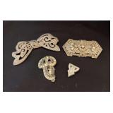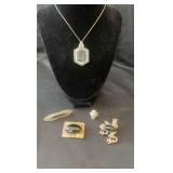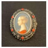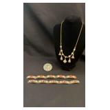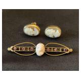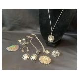 Featured Lots: Rare Antique Victorian Czecho Etched gold tone filigree Cameo Necklace; Antique Art Nouveau Black Molded Floral Brooch; Antique Onyx 14kt Gold Brooch With Huge Diamond; Bakelite Collection; Beautiful Cameo Brooch; Beautiful Sterling Honey Bee Brooch With Pink Tourmaline; Brooch; and more!