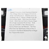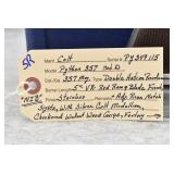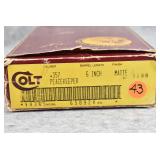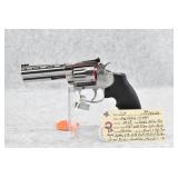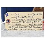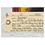 Firearms: 1R. Colt – Mod. Peacekeeper – 357 Mag. Cal. Double Action Revolver – w/6” Vent Rib Barrel w/Ramp Front and Adjustable Rear Sights – Matte Finish – w/Factory Checkered Rubber Grips w/Colt Medallion – w/Factory Matching Numbered Box w/Styrofoam Insert and Trooper Manual – These Revolver were Only Manufactured from 1985-1989! 2R. Scarce! Consecutive Serial Numbered Matched Pair of Colt Mod. King Cobra 22LR 10-Shot Revolvers – Both Guns are Equipped w/4¼” Vent Rib Barrels w/Ramp Blade Front and Adjustable Rear Sights – Both Guns have Stainless Finish – Serial Numbers are No. RA287727 and No. RA287728 – Both Guns are Fitted with Factory Colt Monogrammed Rubber Grips – Each Gun is Unfired w/Their Respective Factory Blue Hard Cases, Manuals, and Factory Orange Hang Tags! – This is A Rare Opportunity to Own A Consecutive Numbered Matched Pair of Colt King Cobras! 3R. Colt – Mod. Python Model D – 357 Mag. Cal. Double Action Revolver – w/2½” Vent Rib Barrel w/Red Ramp Blade Front and Adjustable Rear Notch Sights – Stainless Finish – w/Silver Colt Medallion Checkered Wood Grips – w/Factory Hard Case, Manual, Accessories, and Factory Hang Tag – New in Box 4R. Colt – Mod. Python Model D – 357 Mag. Cal. Double Action Revolver – w/4¼” Vent Rib Barrel w/Red Ramp Blade Front and Adjustable Rear Notch Sights – Blued Finish – w/Gold Colt Medallion Checkered Walnut Wood Grips – w/Factory Hard Case, Manual, Accessories, and Factory Hang Tag – New in Box 5R. Colt – Mod. Python Model D – 357 Mag. Cal. Double Action Revolver – w/5” Vent Rib Barrel w/Red Ramp Blade Front and Adjustable Rear Notch Sights – Stainless Finish – w/Silver Colt Medallion Checkered Walnut Wood Grips – w/Factory Hard Case, Manual, Accessories, and Factory Hang Tag – New in Box 6R. Colt – Mod. Anaconda – 44 Mag. Cal. Double Action Revolver – w/4¼” Vent Rib Barrel w/Red Ramp Blade Front and Adjustable Rear Notch Sights – Stainless Finish – w/Colt Molded Black Rubber Grips – w/Factory Hard Case, Manual, Accessories, and Factory Hang Tag – New in Box 7R. Colt – Mod. King Cobra 10 Shot – 22LR Cal. Double Action Revolver – w/4¼” Vent Rib Barrel w/Fiber Optic Blade Front and Adjustable Rear Notch Sights – Stainless Finish – w/Colt Molded Rubber Grips – w/Factory Hard Case, Manual, Accessories, and Factory Hang Tag – New in Box 8R. Colt – Mod. Single Action Army 3rd Generation (P3871) – 38-40 Cal. Single Action Revolver – w/7½” Barrel w/Factory Blade Front and Rear Notch Sights – Nickel Finish – w/Factory Checkered Black Eagle Grips – w/Factory Hard Case and Manual – New in Box 9R. Taurus – Mod. Raging Hunter – 460 S&W Mag. Cal. Double Action Revolver – w/5 1/8” Ported Barrel w/Factory Sights and Picatinny Rail – Matte Black/Matte Stainless Two-Tone Finish – w/Factory Black Molded Rubber Grips – w/5-Shot Fluted Cylinder – Unfired w/Factory Box, Manual, and Accessories 10R. Smith & Wesson – Mod. 350 – 350 Legend Cal. Double Action Revolver – w/7½” Ported Barrel w/Red Ramp Blade Front and White Outlined Adjustable Rear Notch Sights – Stainless Finish – w/Smith & Wesson Molded Black Rubber Grips – Unfired w/Smith & Wesson Hard Case, Manual, and Accessories 11R. Smith & Wesson Performance Center – Mod. M&P-9 M2.0 Competitor – 9mm Luger Cal. Semi-Auto Pistol – w/5” Barrel w/Fiber Optic Blade Front and Adjustable Rear Factory Sights – Graphite/Black 2-Tone Finish – w/Aluminum Frame – w/Interchangeable Grip Inserts – w/4 Factory Detachable Magazines – Unfired w/Factory Hard Case, Manual, and Accessories 12R. Scarce! Consecutive Serial Numbered Matched Pair of Ruger Mod. New Vaquero 45 Colt Cal. Single Action Revolvers – Both Revolvers are Equipped with 5½” Barrels w/Blade Front and Groove Rear Sights – Both Guns have Blued Finish – Both Guns are Fitted w/Factory Ruger Silver Eagle Laminated Wood Grips – Both Guns are AS NEW w/Their Retrospective Factory Hard Cases and Manuals – Not Very Often Does the Opportunity Arise to Own A Consecutive Numbered Matched Pair of Ruger New Vaquero Revolvers! 13R. Ruger – Mod. Super Redhawk – 22 Hornet Cal. Double Action Revolver – w/9½” Barrel w/Fiber Optic Front and Adjustable Rear Sights – Stainless Finish – w/Factory Ruger Rubber Grips – w/Factory Set of Stainless Ruger Rings – Appears Unfired w/Factory Hard Case and Manual 14R. Ruger – Mod. New Model Blackhawk – 41 Mag. Cal. Single Action Revolver – w/6½” Barrel w/Ramp Blade Front and Adjustable Rear Notch Sights – Blued Finish – w/Ruger Silver Eagle Checkered Black Plastic Grips – As New w/Factory Hard Case and Manual 15R. Magnum Research – Mod. BFR 500 – 500 Linebaugh Cal. Single Action Revolver – w/7½” Barrel w/Blade Front and Adjustable Rear Notch Sights – Stainless Finish – w/Magnum Research Molded Black Rubber Grips – Unfired w/Factory Box, Manual, and Accessories 16R. Magnum Research – Mod. BFR 360 – 360 Back Hammer Cal. Single Action Revolver – w/10½” Barrel w/Blade Front and Adjustable Rear Notch Sights – Stainless Finish – w/Magnum Research Molded Black Rubber Grips – Unfired w/Factory Box, Manual, and Accessories 17R. Ruger – Mod. New Model Blackhawk SRM – 357 Maximum Cal. Single Action Revolver – w/10½” Barrel w/Blade Front and Adjustable Rear Notch Sights – Blued Finish – w/Ruger Silver Eagle Medallion Smooth Wood Grips – w/Factory Box – Only 11,500 Manufactured Between 1982 and 1984 18R. Smith & Wesson – Mod. S&W Shield E-Z – 30 Super Carry Cal. Semi-Auto Pistol – w/3 5/8” Barrel w/3-Dot Blade Front and Adjustable Rear Notch Sights – Blued/Black 2-Tone Finish – w/Factory Textured Black Synthetic Frame and Grips – w/2 Factory Detachable Magazines – Unfired w/Box and Accessories 19R. Taurus – Mod. Deputy – 45 Colt Cal. Single Action Revolver – w/5½” 