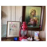 throws crochet bed covers linens what nots religious figures religious items collectables utensils tools Flower pots Statue of Mary bench bedding