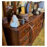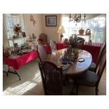 Years of accumulation 2 sofas 2 love seats dining room table and chairs china cabinet kitchen ware books religious books vintage kids books candles lots of bedroom furniture vintage clothing sewing stuff jewelry holiday Jewelry Christmas decorations board games sea shells hot wheel cars trunk clothing base ball bats ladys shoes doll clocks mirrors shelving units garage stuff tools dryer dishes glasses flatware silver plate rugs blankets towels cleaners wall art Craft stuff glass Mardi Gras beads