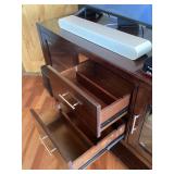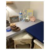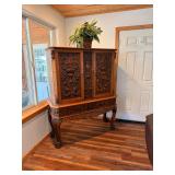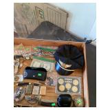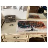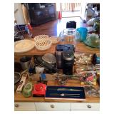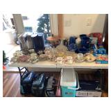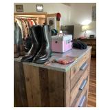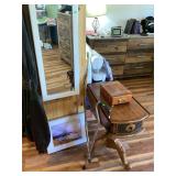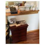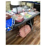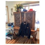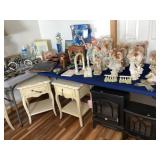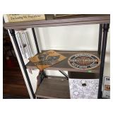 Boho Style Shelf- 28 1/2 x 14 1/2 x 74 1/2 Small round table- two drawers- 28 across when opened; 28 x 15 x 30 1/4 T.V. Center- 60 x 20 x 32 Ashley Furniture Low Boy Dresser- 60 3/4 x 15 1/2 x 36 3/4 Two Ashley furniture night stands- 23 3/4 x 15 1/5 x 24 3/4 Antique wardrobe - 54 x 20 1/2 x 65 1/4 Small round table- 36 across x 17 tall Ashley Furniture Chest of drawers- 33 3/4 x 15 1/2 x 49 Twin Size Adjustable Bed Large Chest of drawers- Bottom: 40 x 19 x 27 1/2; top: 39 x 18 x 51 Coach Kate Spade Women’s and men’s clothing Fiesta dishes Craftsman tools Craftsman totes Samsung Smart Watch Golf clubs Camping gear Harley Davidson