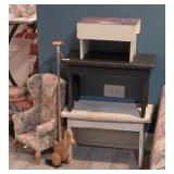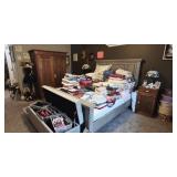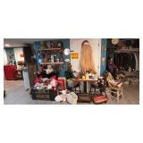 This home is jam-packed with antiques, farmhouse, and country chic decor! FURNITURE and HOME DECOR: Small 2-seat sofa, slag glass lamp, humpback truck, and several other antique trunks, a rattan white 6-drawer dresser, a nightstand, an armoire, and a mirror. An assortment of table lamps, including Tiffany-like lamps. 6 Drawer gray dresser, oak antique student desk, antique oak hat/coat rack with mirror, metal tables, punched tin wood cabinet, clocks, antique oak secretary cabinet, numerous benches and stools, antique oak drop side table, antique overside wood chest and armoire, antique cabinet with drawers, antique wood refrigerator, dress stand, antique ladder back chairs, stained glass lamps, Caulfield art, queen bed, gray fabric storage bench. Lots of pillows and blankets, a hand-painted side table, an oak clothes cabinet, a jewelry cabinet, a stained glass antique oak cabinet, a large antique carved wood storage cabinet, an oak hall rack, a vintage wood and brass carousel horse, an antique wood and metal cabinet, a modern flower swivel easy chair, antique sled table, Hygena wood cabinet, counter height 6 seat kitchen dining table, oak colonial side table, oak wash sink, bookshelves, oak 4 seat antique table, side tables, coffee tables, large stars and moon steamer trunk, floral sofa, antique oak gun cabinet, antique sewing machine, antique enamel kitchen cabinet, wall decor, artwork and more. CLOTHING: Ladies' clothing, purses, shoes, coats, furs, costume jewelry, scarves, and more. Men's clothing, shoes, and coats. COLLECTIBLES: Coca-Cola collectibles, antique crocks and jugs, brass wall mount bells, Americana collectibles, dolls, teddy bears, perfume bottles, Norman Rockwell figures, clocks, radios, Go-Pro camera, enamelware, milk bottles, metal milk jugs, baskets, steins, lighted glass Clark gas pump globe lamp, pressed glass, vintage magazines, Texaco clock, Riverview Tickets, vintage Cubs hats, tools, antique baby clothes, holiday decor, NY Rangers and Steelers garbage cans, and more. GENERAL: Snap-On tool chest, kitchenware, dishes, crystal, wine glasses, barware, cleaning products, walkers, GoGo scooter, craft supplies, wrapping paper, and floral arrangements. Picture frames, books, office supplies, and more. VISIT OFTEN, WE WILL UPDATE YOU WITH PHOTOS AND MORE DETAILS AS WE WORK. 📲 Stay connected for updates and preview photos on Facebook, Instagram, and TikTok.