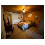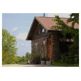 TRACT 1: RESIDENTIAL PROPERTY WITH BARNS AND 48± ACRES (15.13 Acres in CRP 60% of the contract) This exclusive auction opportunity features a private executive retreat nestled in the heart of the celebrated Shawnee Hills Wine Trail. This 4-bedroom, 2-bathroom stone and cedar home built in 2002 offers 2,020 square feet of main level living plus 1,200 square feet of finished basement space. The split-level design follows the hillside location: take 5 steps down to reach the kitchen, breakfast area, laundry room, butler's pantry, half bath, and side entry, or 5 steps up to access the great room, master suite, and additional bedroom. The kitchen area features Boos butcher block countertops, a wood stove, and a cooking fireplace with swing arm positioned between the kitchen and the formal dining area of the great room. The main level has hardwood floors in the great room and bedrooms, while the finished basement includes under-stair storage.