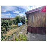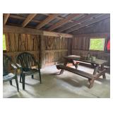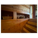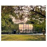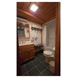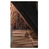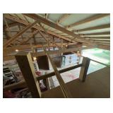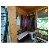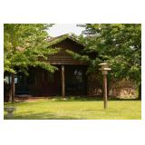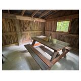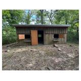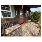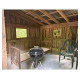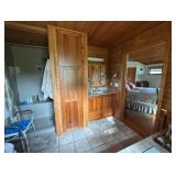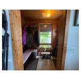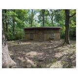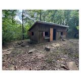 Cabin in the Woods · 12’ x 24’ · One Door · Dutch windows on all sides · Front has flower boxes · Concrete floor · No electric · No water