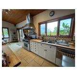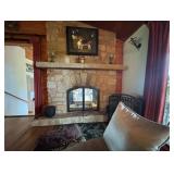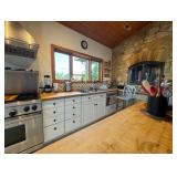 Features: · Boos butcher block countertops · Island Boos butcher block countertops · A double-sided stone fireplace that opens to both the kitchen and great room/dining area - Kentucky Gold from Lotus Naturescapes - Custom doors & mantel - Cooking Fireplace with Traditional Swing Arm & Grate · Wolf Range/Oven · Reverse osmosis kitchen water filter · Wood stove for supplemental heating · Laundry room with privacy glass door and integrated pantry area · Great room featuring antique chandeliers and wall sconces · Master bath with jetted tub · Master bath shower updated with built-in bench (2015) · Full-length covered back deck with wide open views · Pella sliding glass doors · Hardwood floors in great room, master suite, bedroom, and stairway · Tile flooring in kitchen, laundry, baths, and recreation room · Carpet flooring in bedrooms 3 & 4 · Pine tongue and groove walls and ceilings in main rooms · Built in shelves · Finished basement: Two bedrooms, a full bath, a half bath, a storage room, and a rec room (currently a gym area) · Walk-out basement with covered patio · Stone exterior with cedar siding · Shingle Roof · Gravel & Concrete Parking · Gas Forced Air Heat · Central A/C · Public Water · Septic System · Barns and stables for livestock · Greenhouse 6 x 12 · Rural privacy with reasonable access to amenities · Children's custom-built swing set with attached fenced dog pen with doghouse · Income from Conservation Reserve Program (CRP) enrollment through 2027 · Natural wet-weather pond · Several creeks · Small orchard with apple trees, peach trees, plum trees, and cherry trees · 30 grapevines · Mature sugar maple trees for making maple syrup · Hen house and fenced chicken pen · Historic Butcher Norton Cemetery (dating to 1820) · 1/4-mile tree-lined driveway · Elevated points on the property offer panoramic scenic views in every direction · View of Bald Knob Cross of Peace · Open-ended Quonset style hut storage for equipment (approx. 18’ x 40')