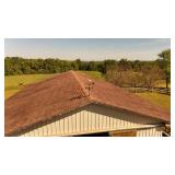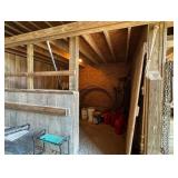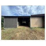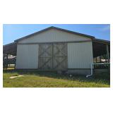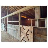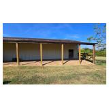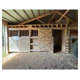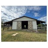Barn & Stables 2 · 72' x 32' Pole Frame Building (2,304 sq ft) · Two 72' x 12' Lean-To structures (864 sq ft each) · Storage: 10’ x 20’ · 9 Stalls Total (4 + 5) · At the north end, there are two stalls; one has exterior access to a small corral, and the other exits directly outside. · Barn doors on both ends · Hay lofts on each side · Tool Area/Room · 1500-gallon in-ground cistern located on the north side of the barn (not currently in use, requires cleaning)