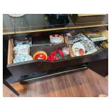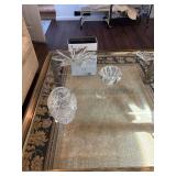Beautiful large Satsuma vase, Chinese painting, console, server & wool rug, burled dining room table & chairs, brass chandelier, white leather chair & ottoman, complete master bedroom set, sofa, brass & glass nesting tables, end tables, assorted lamps, marble pedestal, mirrors, decorative accent pieces, costume jewelry, furs, bags, clothes, scarves & accessories, set of Lenox "Eternal" and other china, flatware, tea set, glassware, crystal, oils, linens, aquarium filter, lights & accessories, books & lots more! |