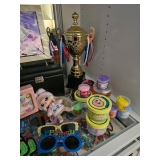 Patio Furniture: Table with Bench & 4 Chairs, Swivel Chairs, Double Lounger, Sofa, Table Electronics: Hisense Smart TV, Zenith Stereo, Electric Guitar with Amp, GE FM/AM Radio, KMart Radio, Zenith Solid State Radio, Bose SoundLink Speaker, Oontz Bluetooth Speaker, Transistor Radio, GE Portable Radios, Pyle Amplifier, JVC Receiver, Sony TV Furniture: Retro Diner Table with 4 Chairs, Couch with Storage, Accent Chairs, Console Table, Side Tables, MCM Trunk, 4 Counter Stools, Bar, Trunk, Desk, Cabinets, Storage Cubbies, Children's Loft Bed, Couches Small Kitchen Appliances: Dash Clear-View Toaster, Wamife Coffee Maker, Brentwood Milkshake Maker, Brentwood Blender, Silonn Ice Maker, NutriFryer Air Fryer Children's Items: Barbie Dreamhouse, Barbies, Books, Toys, Games, Stuffed Animals, Dolls, Marshmallow Bears, Clothing, Jewelry, Squishmallows, Fidget Toys Corning Atomic Starburst Coffee Carafes Lincoln Beautyware Chrome Canisters Military Finds: Cookbooks, Awards/Medals, Ammo Box, Canteen, Cartridge Belt, Books, Helmets, Periscope, Mess Kit, Radio Signal, Gas Mask, and more! Exercise Equipment: Hand Weights, Pull Up/Dip Station, Weight Bench (New in Box) Garage Goods: Sports Equipment, Snowblower, Blower, Pedal Go-Cart, Golf Clubs, Kid's ATV, Golf Clubs, Tools, Digital Multimeter, Sled, Drill, Ladders, Inversion Table Cameras: Cine-Kodak Magazine 8, Brownie Hawkeye, Imperial Mark XII Flash, Kodak Brownie Starflex, Polaroid Land Camera Swinger, Polaroid Land Camera OneStep, Mar-Crest, Polaroid SX-70 Land Camera