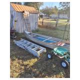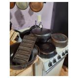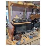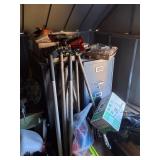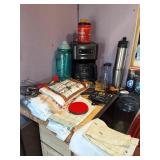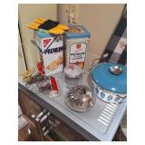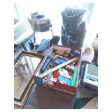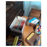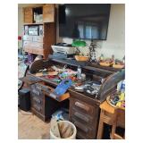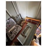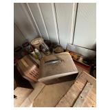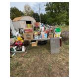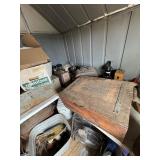 Items being offered include antique furniture (rolltop desk from Springfield Illinois post office, oak ice box, kitchen tables and chairs, oak hall tree, rocking chair) refrigerator, small chest freezer, apartment size electric stove, TV, portable stereo, full size brass bed (complete), several pieces of vintage cast iron cookware (Griswold, Wagner, etc.), linens, clothes, vintage quilts and afgans, two antique trunks, antique sewing machines, Red Ryder BB gun, pellet gun, Buck 103 with sheath, small household appliances, small antique and vintage collectibles, canoe, two bicycles, yard cart, lumber, camping gear, fishing poles and tackle, construction supplies, tools including hand tools, corded power tools, battery power tools, seasonal decor, and more. There are dozens of boxes we have yet to open so there are many more treasures for all of us to find! |
