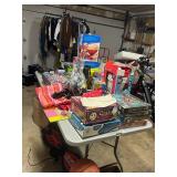 Loaded! Fine furnishings & more, animal print ottoman, farm table & chairs, printed end tables, armoire, wall unit, large drop leaf table, girls bedroom set & other bedroom furniture, pair of chairs, coffee table with bench storage, server, beds, lots of decorative accent pieces, Nintendo 64, Sega Dreamcast, Xbox & Xbox 1, WII, controllers, games, Atlantis slot machine, air hockey, Toy Story pinball machine, overloaded with games, toys, dolls, collectible toys, costumes, TV's, sunglasses, clothes, shoes, sneakers, Justin boots, lots of kitware including small appliances, pots & pans, flatware, rattan egg swings, square outdoor table & chairs, coolers, garden tools, wine fridge, mini fridge, beach chairs, bar needs & loads more! |