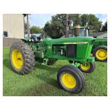 Tractors: 1994 John Deere 7800 MFWD Tractor—SN:RW7800P009450, shows 10,999 hours, 19 speed powershift transmission was rebuilt in 2015 with a total of $21,218 spent on transmission, new FWA clutch in 2015 with $5,000 spent on clutch, 540/1000 pto, 3 remotes, 3pt with quick hitch, joystick control for loader, 18.4-42 rear tires, cab, heat, a/c, radio 1976 John Deere 4430 2WD Diesel Tractor—SN:055334R, shows 9,536 hours, quad range transmission, 2 remotes, 8 front suitcase weights, 3 sets of rear wheel weights, tractor was overhauled in April of 2022, 18.4-38 rear tires, heat, a/c, radio, 540/1000 pto, 3pt with 3rd link 1967 John Deere 4020 Diesel 2WD Tractor—SN:169309R, shows 12,750 hours, syncro range transmission, wide front, 3pt with 3rd link, 2 remotes, 24 volt, tractor has been overhauled at one time, rear fenders, 18.4-34 rear tires 1967 John Deere 3020 Diesel 2WD Tractor w/ Miller M12 Loader—SN:T113R085705R, shows 7,400 hours, synchro shift transmission, 2 remotes, 540/1000 pto, 3pt with 3rd link, rear fenders, 3 sets of rear wheel weights, Miller 12 Loader with 7ft grapple fork bucket, like new 15.5-38 rear tires and rims, in 2016 this tractor had a new clutch/brakes, pto clutch valves, thermostat, alternator & lights, 12 volt conversion 1946 John Deere A Tractor-Partially Restored—SN:578483, new tires and 6 volt battery, nf, 12.4-38 rear tires, 540 pto, rear fenders, runs and drives