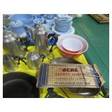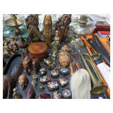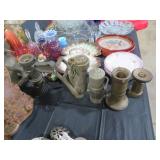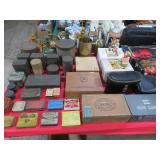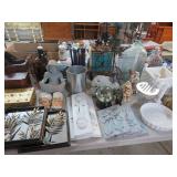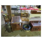 MORE: Globe on stand; Milk cans; Bose radio; Brass bucket; Stone trees & flowers; Stone grapes; Nice Brass items – candlesticks, censer; letter holder, snuffers, letter opener, sconces & more; Virginia Metalcrafters brass; Cigar boxes; Old advertising tins; Binoculars; Stein;