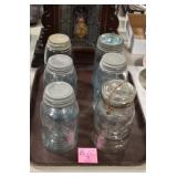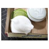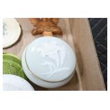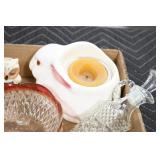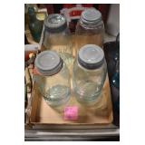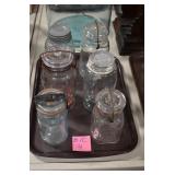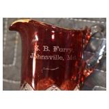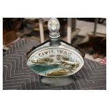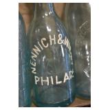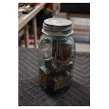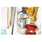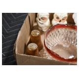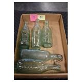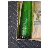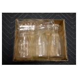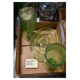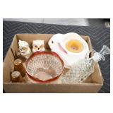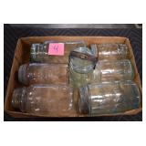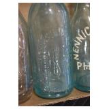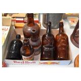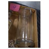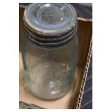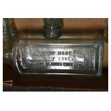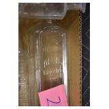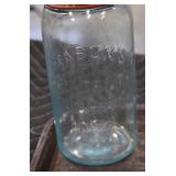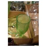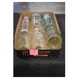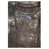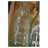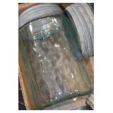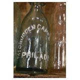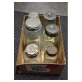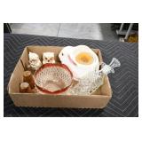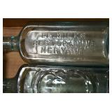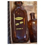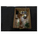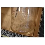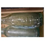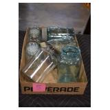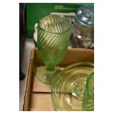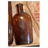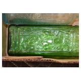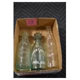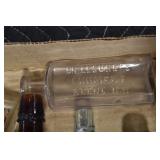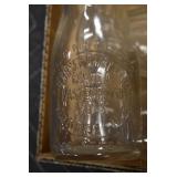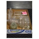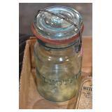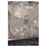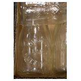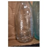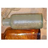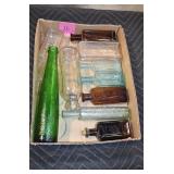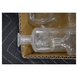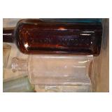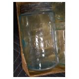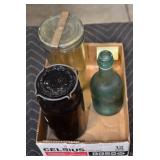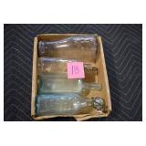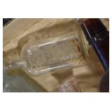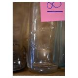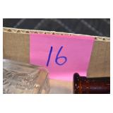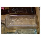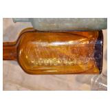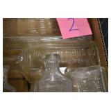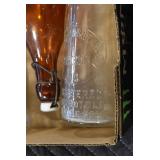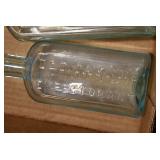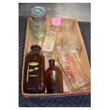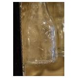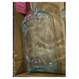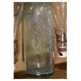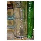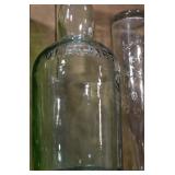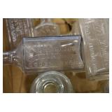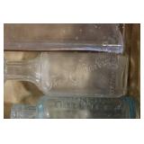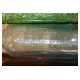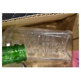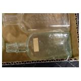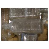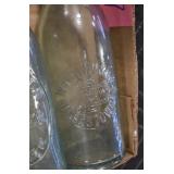 Antique Glassware: 30+ Lots of Vintage Glass Bottles, Milk Bottles, Dated Mason Jars, Wedgewood Glass, North Lodge Fishing Oriented Snow Globe, Decanters, Carnival Glass, Lenox Glass, Oriental Glass, Ruby Glass, Green Depression Glass, Oil Lamps, and Other