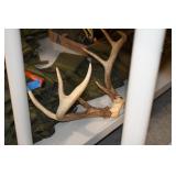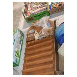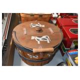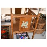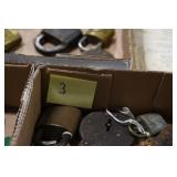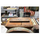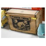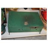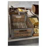 Furniture: 20+ Apple Crates, Childs Yard Toys, Lawn Chairs, Coolers, Glass-Top Patio Table with 4 Chairs, Horse Saddles, Display Cabinet, Metal Stand, Wine Rack, Heaters, Old Metal Scale, Commercial Printer, Upholstered Loveseat, Wood Desk, Military and Other Style Trunks, Wooden Barrel, Various Stands, Chairs, and Other