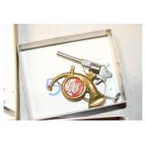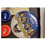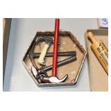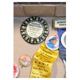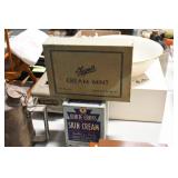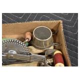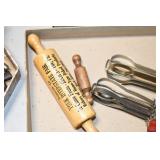 Antiques and Collectibles: Large Amount of Stamps, Holiday Decorations, Modern and Collectible Tools, Sports Cards, Signed Baseballs, Hockey Pucks, Signed Football, Ornate Mantle Clocks, War Bond Posters, Framed Prints and Pictures, Longaberger Basket Bell on Hanging Stand, McCormick Deering Yard Stick, Miniature Tools and Guns, Pottery Crocks and Jugs, Vintage Pink Radio, Miniature Cast Fry Pans, Gettysburg Postcards, Locks with Keys, German Steins, Advertising Calendars and Thermometers, Advertising Tins, Cigarette Advertising Items, Political Pinback Buttons, Wooden Butter Churn, Large Amount of Doilies and Afghans, Ball Caps, Large Amount of Lighters, Belt Buckles, Costume Jewelry, New KitchenAid Mixer and KitchenAid Ice Cream Attachment, Vintage Harmonicas, Cast Figures, Copper and Brass Items, Woodware, Granite and Porcelainware, Lanterns, Ribbons and Medals, Old Photographs, and Other