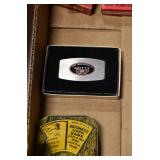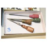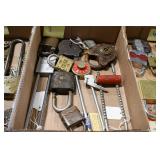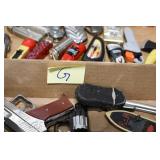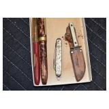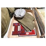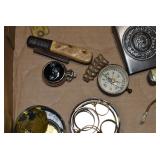 Sporting and Militaria: Folding, Pen, and Sheath Knives, Winchester Flashlight, Bayonets, Meat Cleavers, Naval Fids Knott Breaker, Military Hats and Helmets, US Marked Holster, Military Uniforms, Web Gear, Military Bags and Pouches, and Other