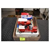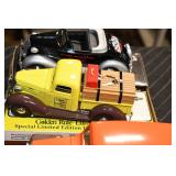 Collectible Toys and Trains: Vintage Tin Toys, Cast Toys, Childs Toy Blocks, Toy Truck Banks, Diecast Toy Tractors, Toy Tractor Trailers, Lionel and Other Train Engines, Tenders, Cars, Layout Accessories, Track, and Other