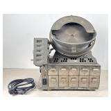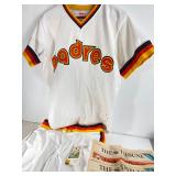 This estate sale features a wide variety of unique and collectible items spanning art, decor, and personal treasures. Highlights include a James Coleman signed artist proof, original oil paintings, copper reliefs, prints, pottery, sculptures, figurines, art glass, and lithographs. Also available are hobby and sports collectibles such as a MAVIC Air drone, remote control motorcycle, vintage San Diego Padres uniform, 1945 World Series program and tickets, sports cards, autographs, and memorabilia. The collection continues with vintage lamps, globes, watches, mirrors, books, clocks, jewelry, and decorative glassware, along with an assortment of kitchenware including casserole dishes, uranium glass, decanters, salt and pepper shakers, cast iron cookware, and serving sets.