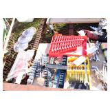 Reclining Couch & Love Seat End Tables Table Lamps Nice Kitchen Table w/Drawer on each side - 1 Leaf 2) Kitchen / Dining Chairs Recliner Metal Racks / Stands Patio Furniture Concrete Flower Pots Rugs T. V. 's Framed Prints Kitchen Items LOTS OF TUPPERWARE & PAMPERED CHEF Stone Baking Items Dishes / Crystal / Collectibles Wood Bench Wood Mounted Swing Yard Hooks & Ornaments Lg. Cheese Box Sm. Green Oil Lamp Odd & End Tables AND SO MUCH MORE............... TOOLS Lots & Lots of Hand Tools (2 trailer loads - added) Sockets Wrenches 5/16 Router Air Sander Clamps Hack Saws Lots of Hack Saw Blades Saw Blades Hand Saws Nails Tool Boxes Tree Saw LOTS & LOTS MORE........