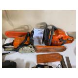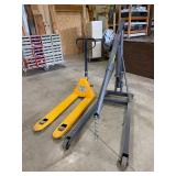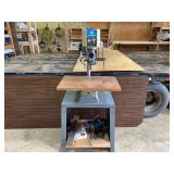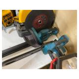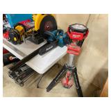 Tools/Power Tools. Coats tire machine; 8-drawer Mac toolbox; 10-drawer Mac tools top box; Milwaukee M18 work light; Makita cordless chainsaw; Makita cordless hedge trimmer; Makita Cordless Mini-Blower; DeWalt cordless mini- air compressor; propane heaters; Homelite 150,000 BTU space heater; Stihl MM 55 tiller; Craftsman tool sets; Napa 3-1/2 ton floor jack; Stihl 018C chainsaw; Husqvarna 455 Rancher chainsaw; Craftsman cordless impact driver; DeWalt DW705 compound miter saw; loads of wood clamps, pipe and I beam style; bolt bins loaded with hardware; assorted hand tools, sockets, wrenches, pliers, levels, crowbars; ratchet straps; loads of extension cords; shop stools; air compressor, air hoses; Hol-Dem Model 980-A Solid State electric fencer; North Shore bander; Napa 3/4 ton engine hoist; Mac 1/3 HP bench grinder; Pallet Jack; DeWalt DCS 380 variable speed reciprocating saw; Grizzly dust collector; Grizzly 20” planner; Grizzly table saw; Grizzly 8” jointer; Delta Model 10 Deluxe radial arm saw; Rockwell 32” radial drill press; pallet racking, shelving units; Porter Cable Speedmatic router & table; Delta hollow chisel mortiser; flat stock, bar stock, all thread hardware; fencing supplies.