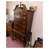 FURNITURE: Gorgeous Queen Anne Mahogany Highboy, Country cupboard, Lighted Curio cabinet, Mahogany cedar chest, Pantry cupboard, Wicker couch, Sofa couch, Corner curio cupboard, Painted pink kitchen hutch, End tables, Drop front secretary desk, Entertainment center, Painted rocker, Recliner, Mahogany cedar chest, Windsor chair, & MORE!