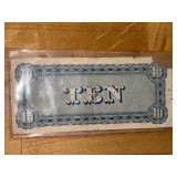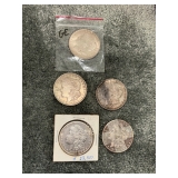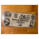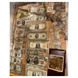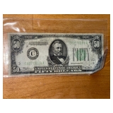 CURRENCY & COINS: Over 40 US Morgan & Peace silver dollars combined, Silver coins, 1934 $50 note Federal Reserve seal, 1907 $5 US Note woodchopper legal tender, 1914 Federal Reserve Blue seal note, 1899 $1 dollar black eagle silver certificate, 1922 $10 dollar Gold certificate, 1882 $5 dollar US Liberty Head gold coin, 1859 $5 Unadilla Bank obsolete currency note, 1861 $1 North Western bank obsolete note, 1857 $2 Bank of Westfield obsolete note, 1854 $5 Farmers & Exchange Confederate currency note, 1864 Confederate States of America $10 note, 1857 $5 Planters Bank obsolete note, 1917 $1 Red seal oversized note, Indian head pennies, Early pennies, Proof & Mint sets, & MORE!