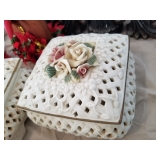 many antiques, cedar hope chest 85+ years old cermic nativity scene set 50+ years many other cermics rockin chairs, large mirriors christmas decor, fancy drinksing glasses still in the box all kitchen items most brand new excerise bike jewerly, watches, cologne brand new skin care and makeup, some used by clinque, lancome, laura mercer, etc coats coffee table shark vac cleaner, bona mops crystals brand new nike and under armour tennis shoes womes guess purses cabinets comforters and sheets and much more |
