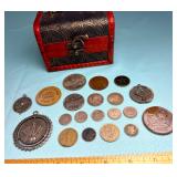 Old Silver Coins, Medals & Tokens w/Chest